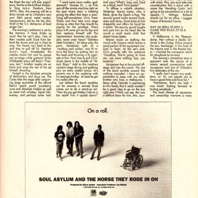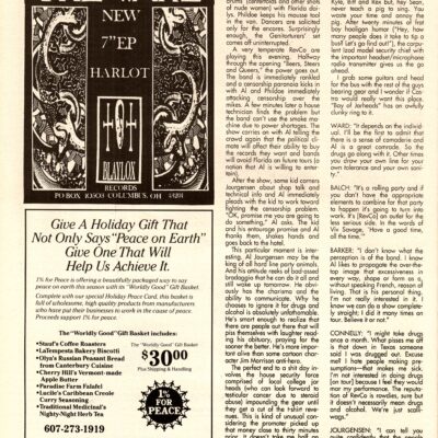 CONNELLY: “I might take drugs once a month. What pisses me off is that down in Texas someone said I was drugged out. Excuse me? I hate people making presumptions – that makes me sick. I’m not interested in doing drugs on tour because I feel they would mar my performance. The reputation of REVCO is rowdies, sure but it doesn’t necessarily mean drugs and alcohol. We’re just scalliwags.”
