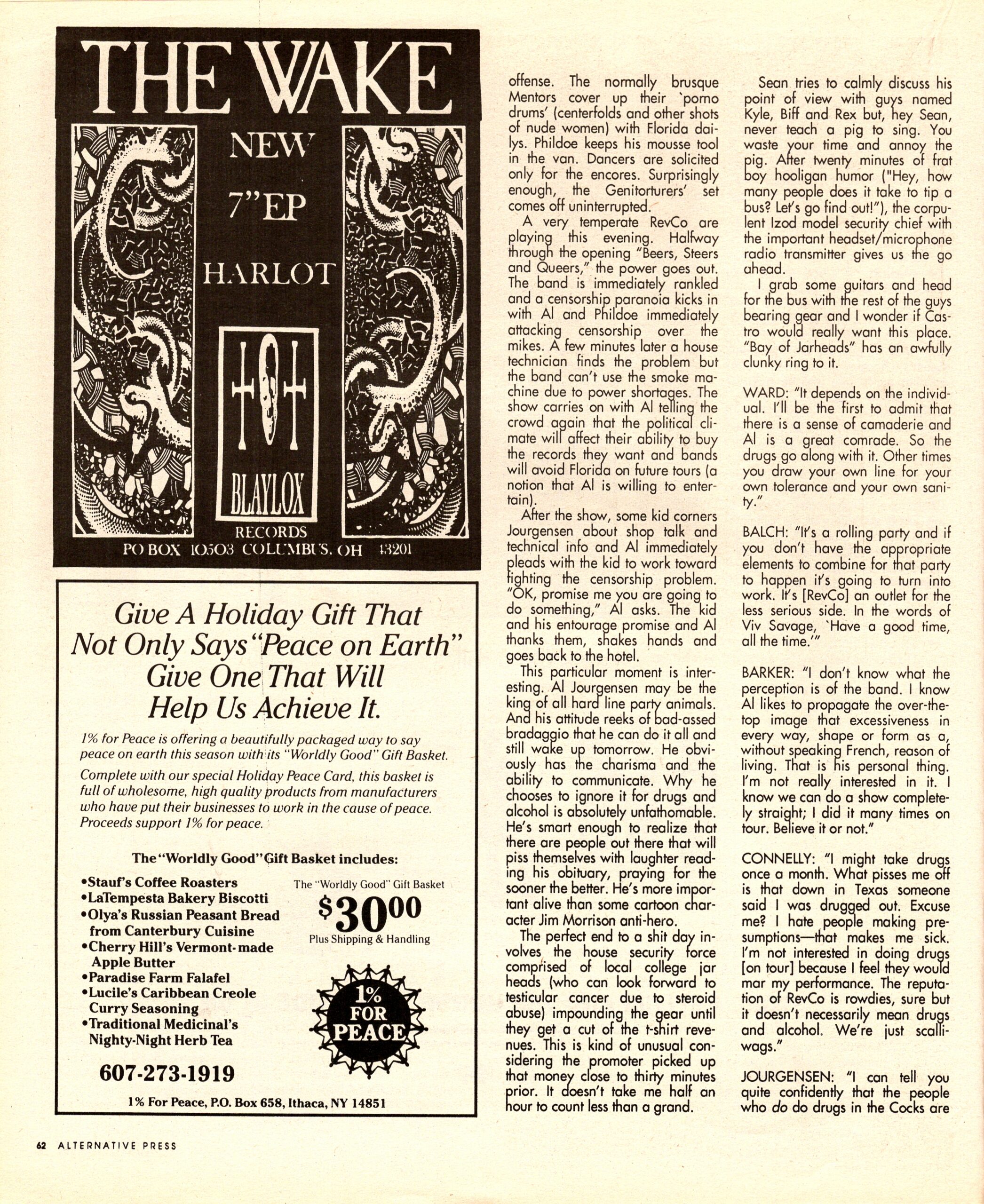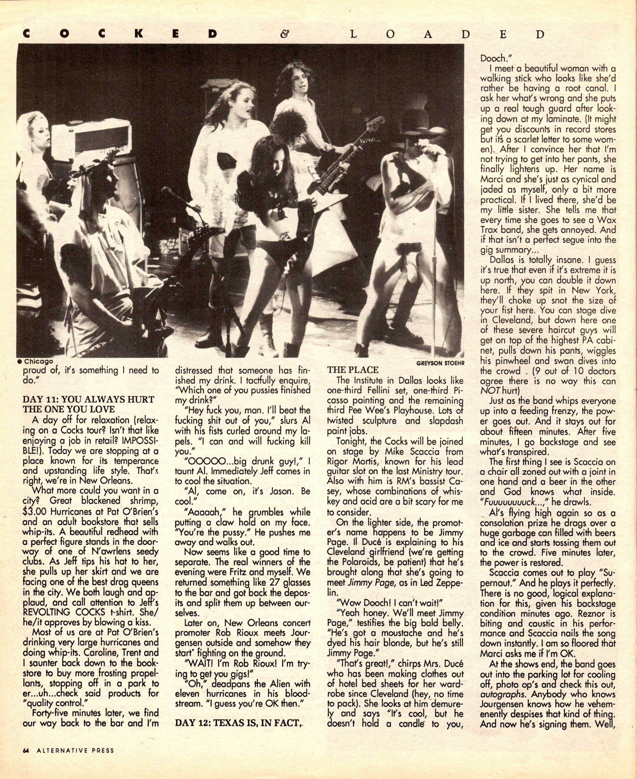 JOURGENSEN: “I can tell you quite confidently that the people who do do drugs in the COCKS are drug users not abusers. The big difference that all these fucking 1-900-HELP lines should understand is that because you do a drug you are not a piece of shit. I think that you can use drugs in a positive situation. It’s like walking across a fence for 40 yards. It’s a tricky situation and it’s difficult to do. I am not encouraging anyone to do drugs and I am not encouraging anyone not to do drugs.