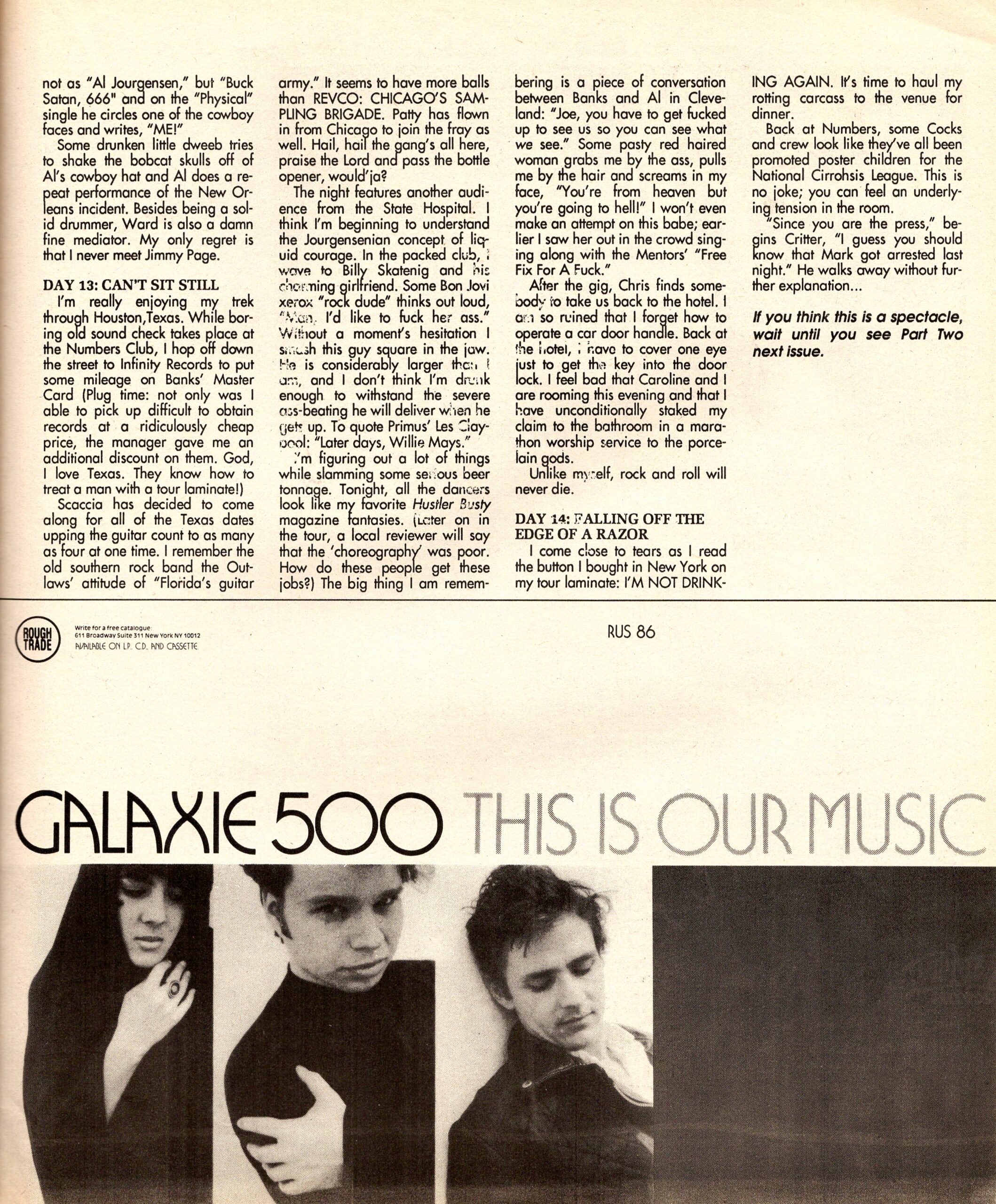 SEAN JOYCE: “The first night I fell into the too-much-worrying thing of everything getting off to a bad start. As soon as we were in Cleveland, I thought, ‘Fuck it, I’m ready to punk out.’ On the REVCO tour everyone is equal – that’s why we get paid the same. If we fucked up our jobs there would be problems, but that’s cool because Al gives a certain amount of freedom.
