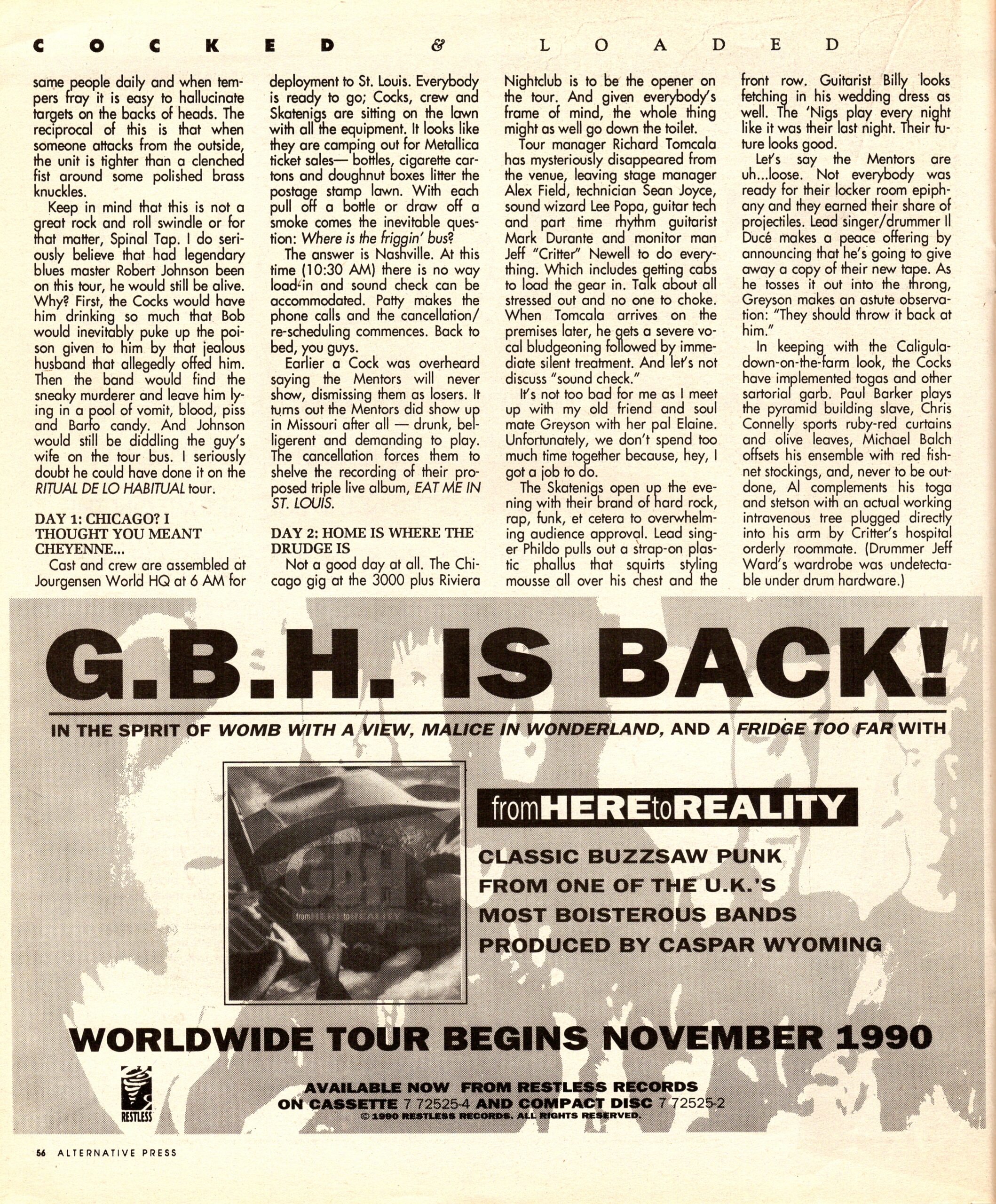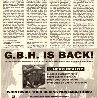 Earlier a COCK was overheard saying THE MENTORS would never show, dismissing them as losers. It turns out THE MENTORS did show up in Missouri after all – drunk, belligerent and demanding to play. The cancellation forces them to shelve the recording of their proposed triple live album, “Eat Me In St. Louis”.